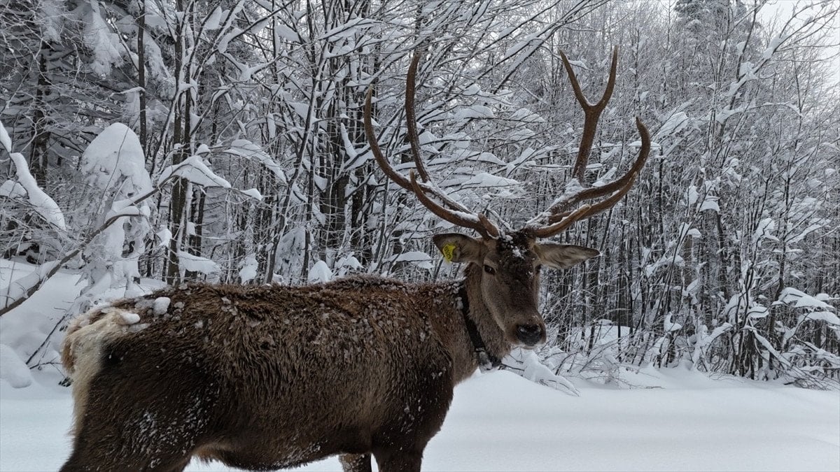 Kuzuyayla’da kış manzarası: Karlar arasında kızılgeyik
