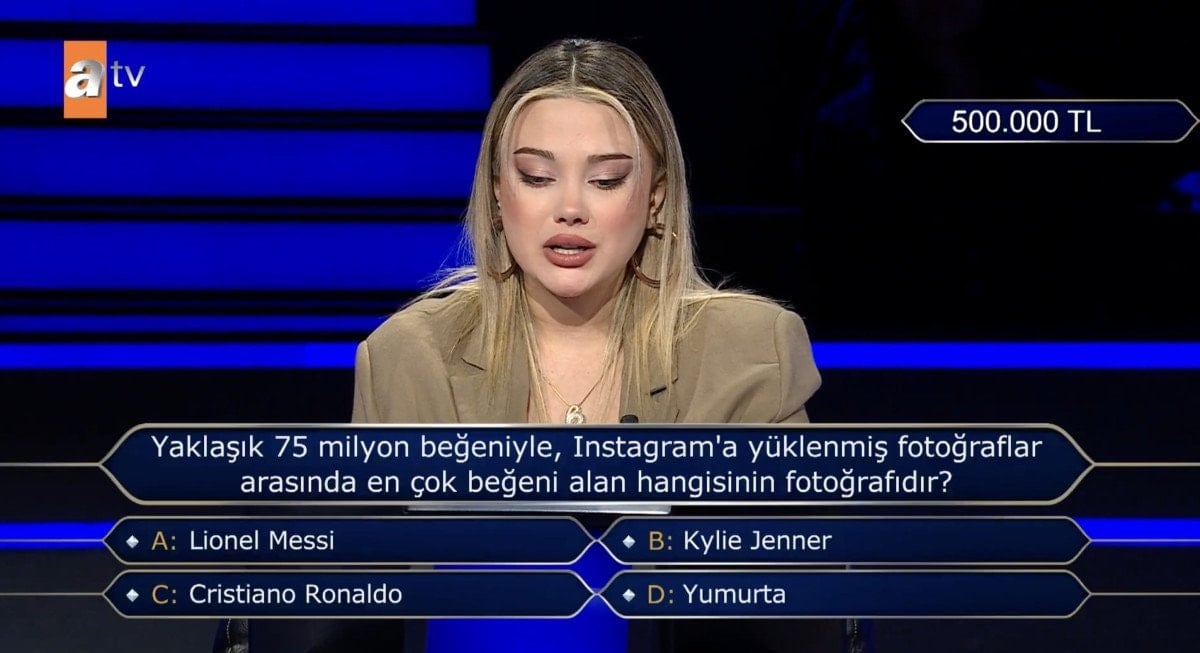 Soru, “Yaklaşık 75 milyon beğeniyle, Instagram’a yüklenmiş fotoğraflar arasında en çok beğeni alan hangisinin fotoğrafıdır?” şeklinde oldu.
