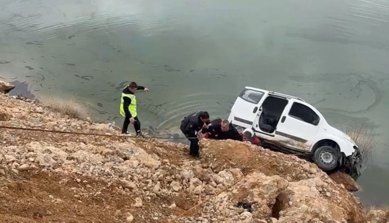 Malatya’da araç gölete uçtu: Sürücü hafif yaralandı