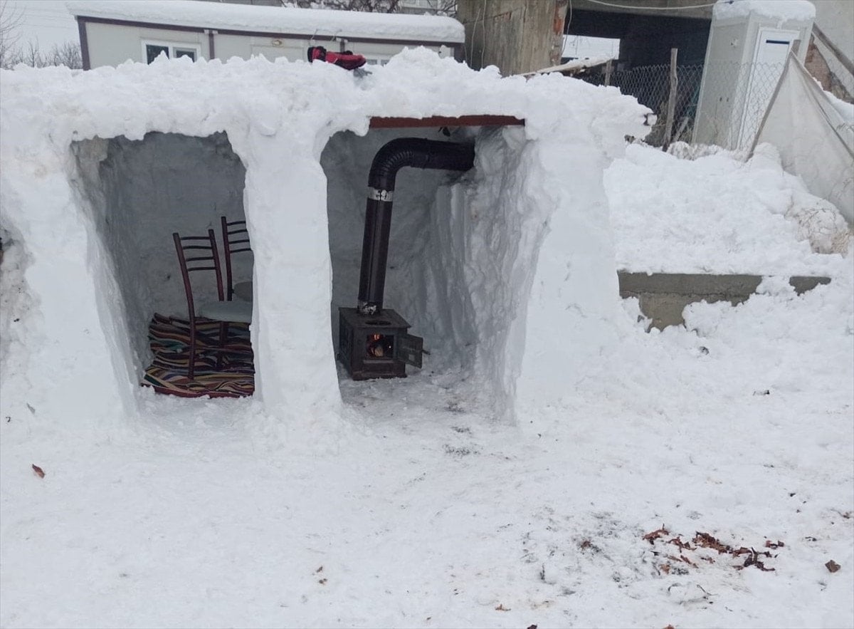 Malatya’da babadan çocuklarına sürpriz kardan ev