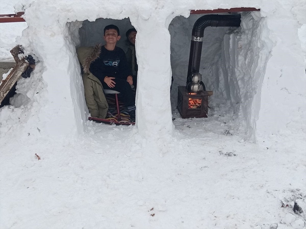 Sadece dış görünümüyle yetinmeyen Yaman, kardan evin içine halı serdi, küçük bir soba kurdu. İç düzenlemesiyle adeta gerçek bir evi andıran yapı, çocukların büyük ilgisini çekti.
