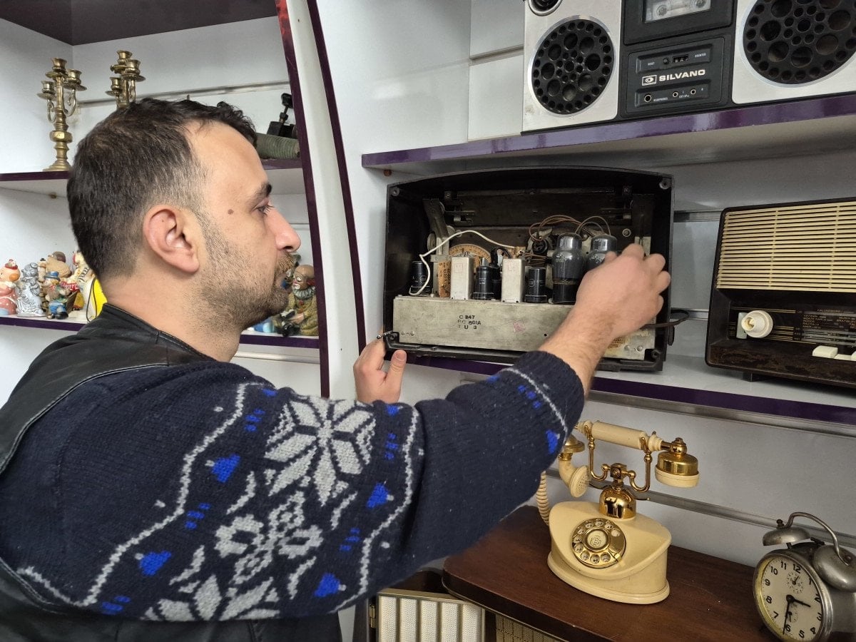 30’un üzerinde radyo ve farklı antika ürünleri bulunan Gaspak, eşyalarının bakımının yanı sıra işletmesinde online mezatlar yapıyor.
