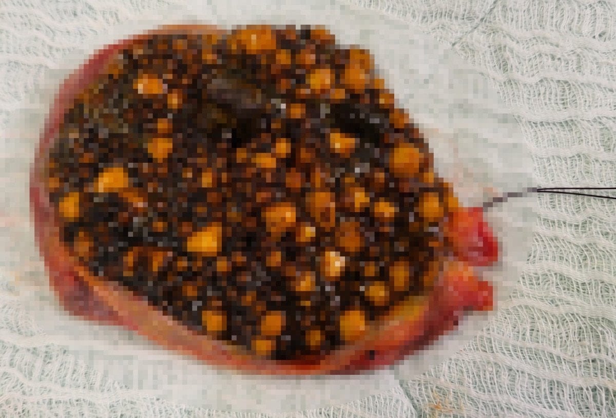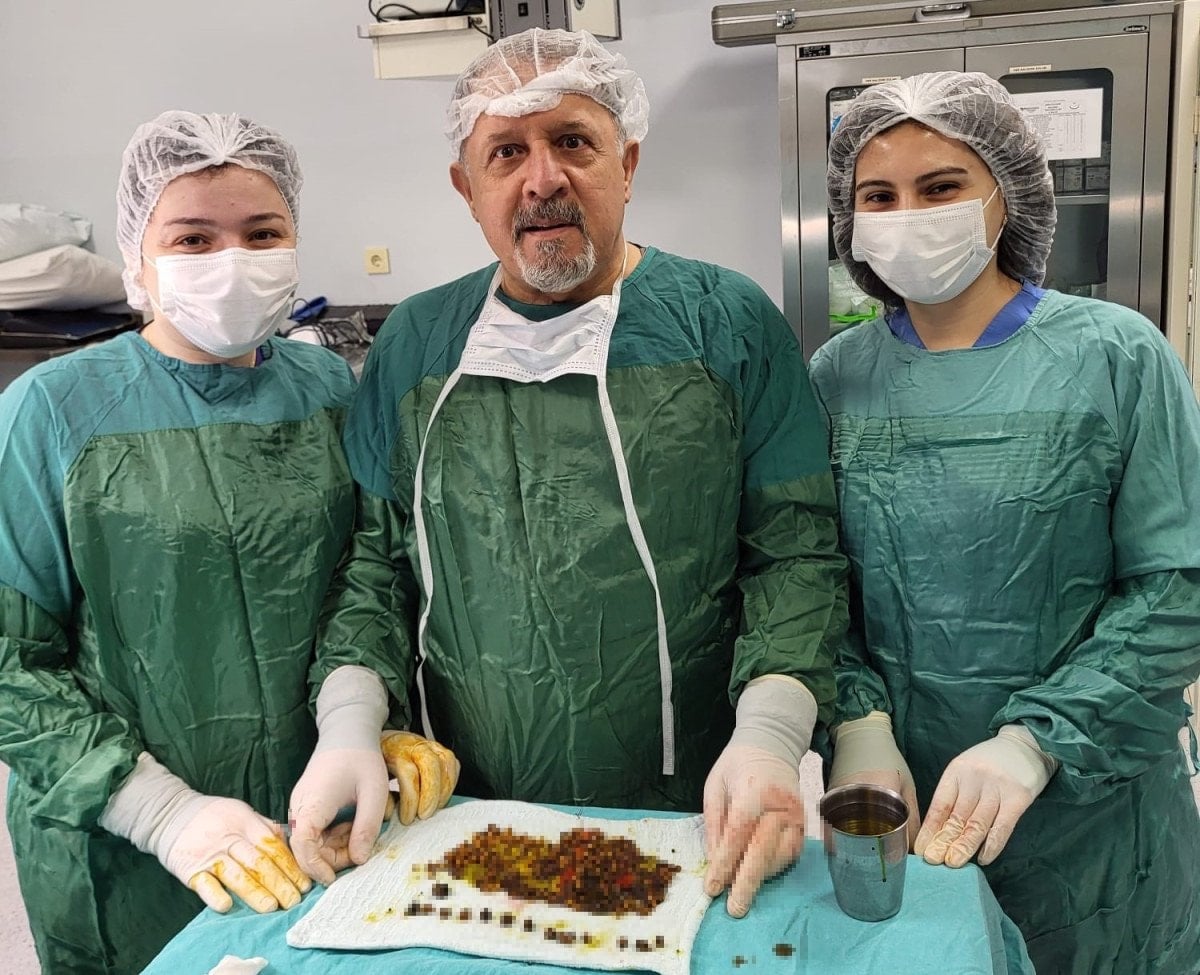Laparoskopik yöntemle ameliyat edilen hastanın safra kesesinden irili ufaklı binlerce taş çıkarıldı.