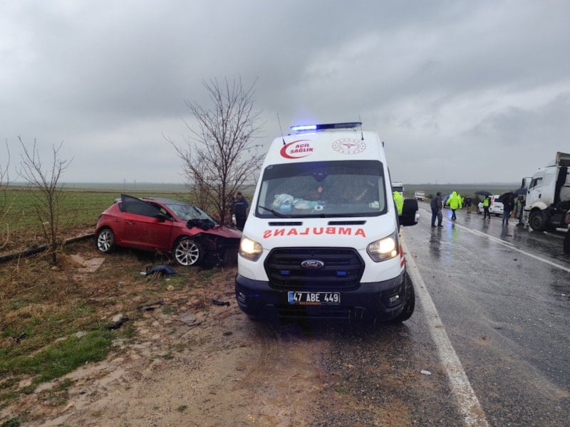Mardin’in Artuklu ilçesi kırsal Akıncı Mahallesi yakınlarında, sürücülerin isimleri öğrenilemeyen otomobil ile tır çarpıştı.