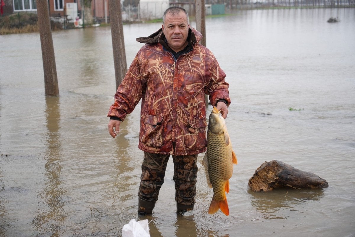 Meriç Nehri’nin taşmasıyla bazı vatandaşlar tarlasında canlı sazan balığı yakaladı