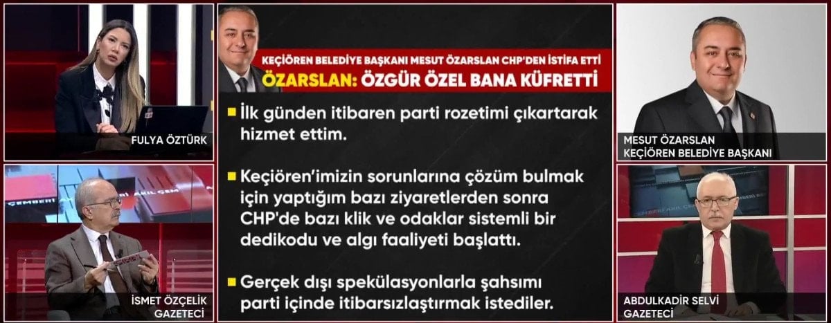 Açıklamasından bir süre sonra CNN TÜRK canlı yayınına bağlanan Keçiören Belediye Başkanı Mesut Özarslan, yaşananlara ilişkin burada gazetecilerin sorularını yanıtladı.