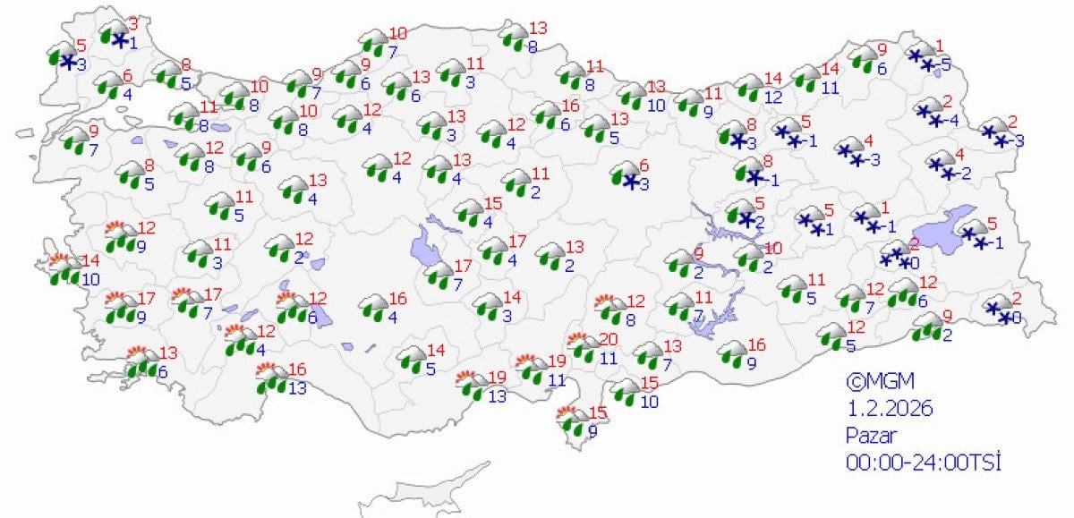 Ülke genelinde kuru ancak keskin soğuk havanın etkili olacağı, kar yağışı daha yerel ve yüksek kesimlere sınırlı kalacağı öngörülüyor.