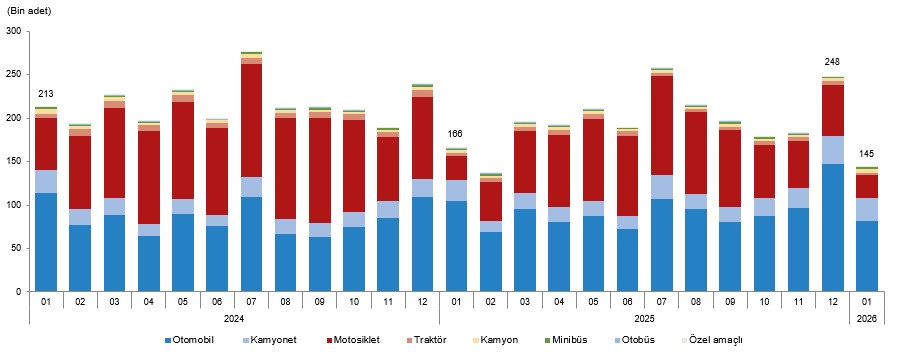 Trafiğe kaydı yapılan taşıt sayısı, Ocak 2024-Ocak 2026