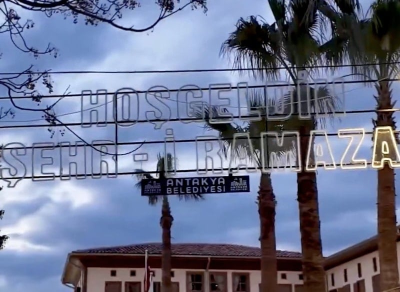Görüntülere, Antakya’nın yeniden inşa edilen sokakları, özellikle depremde yerle bir olan Kemalpaşa Caddesi’ndeki iftar hazırlıkları, aydınlatılmış camiler ve vatandaşların Ramazan coşkusu yansıdı.