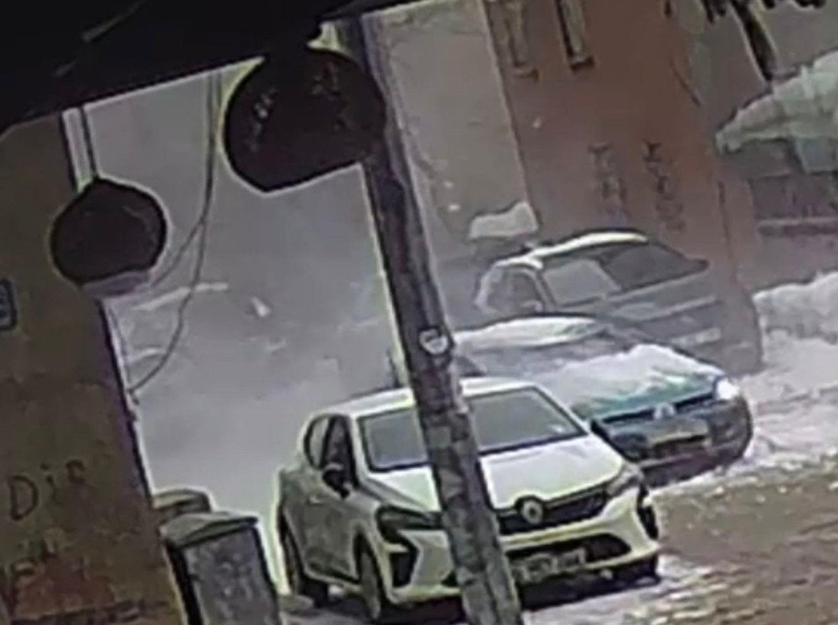 Yoldan geçen bir vatandaşın da son anda kurtulduğu olay, bir iş yerinin güvenlik kamerasına yansıdı.
