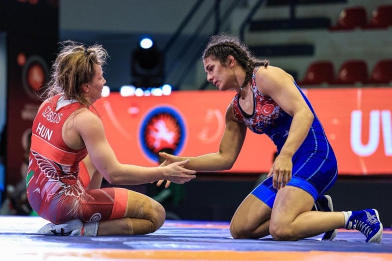 Zorlu geçen maçta Nesrin, tüm rakiplerini puan vermeden teknik üstünlükle geçen Kırgız rakibine 8-4 mağlup oldu.