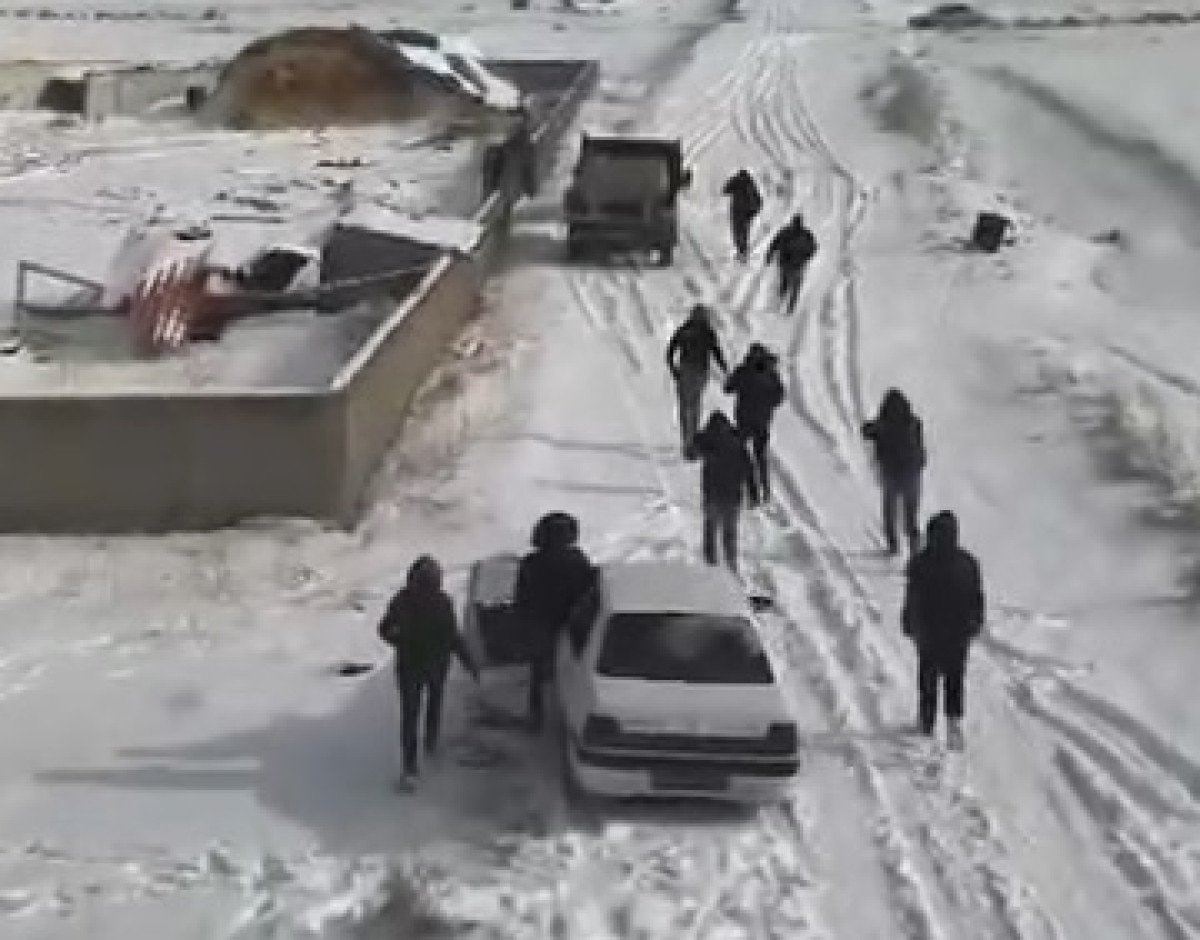 Bir kişinin ise kar nedeniyle ilerlemeyen otomobili önce arkasından ittiği, sonra araca bindiği görüntülerde yer aldı.
