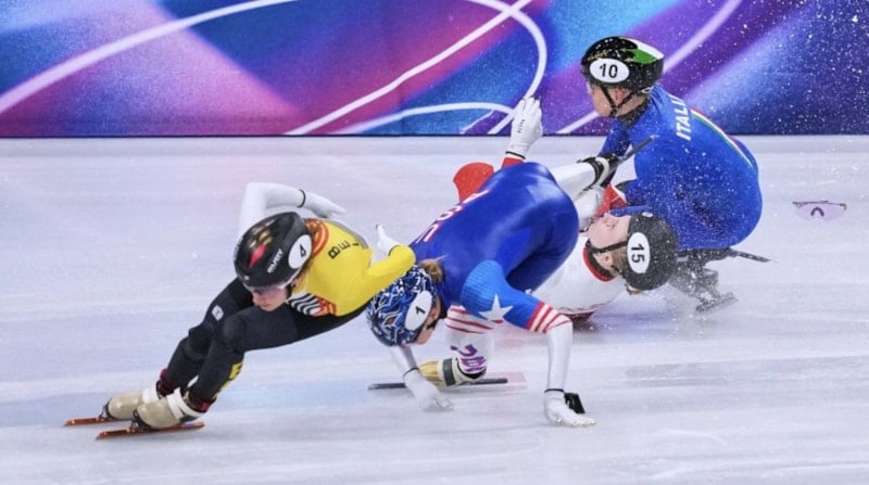 Assago Buz Pateni Arenası’nda cuma akşamı gerçekleştirilen kadınlar 1500 metre kısa kulvar hız pateni yarışlarında adeta yürekler ağza geldi.