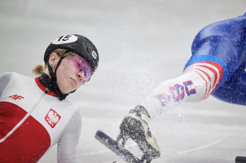 O anlarda yere düşen Sellier’in yüzüne bir başka yarışmacı olan Amerikalı rakibi Kristen Santos-Griswold’un paten bıçağı geldi.