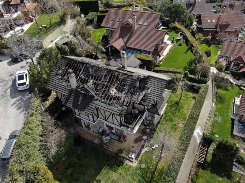 Öte yandan, ünlü oyuncunun çıkan yangında küle dönen çatı katı, havadan görüntülendi.