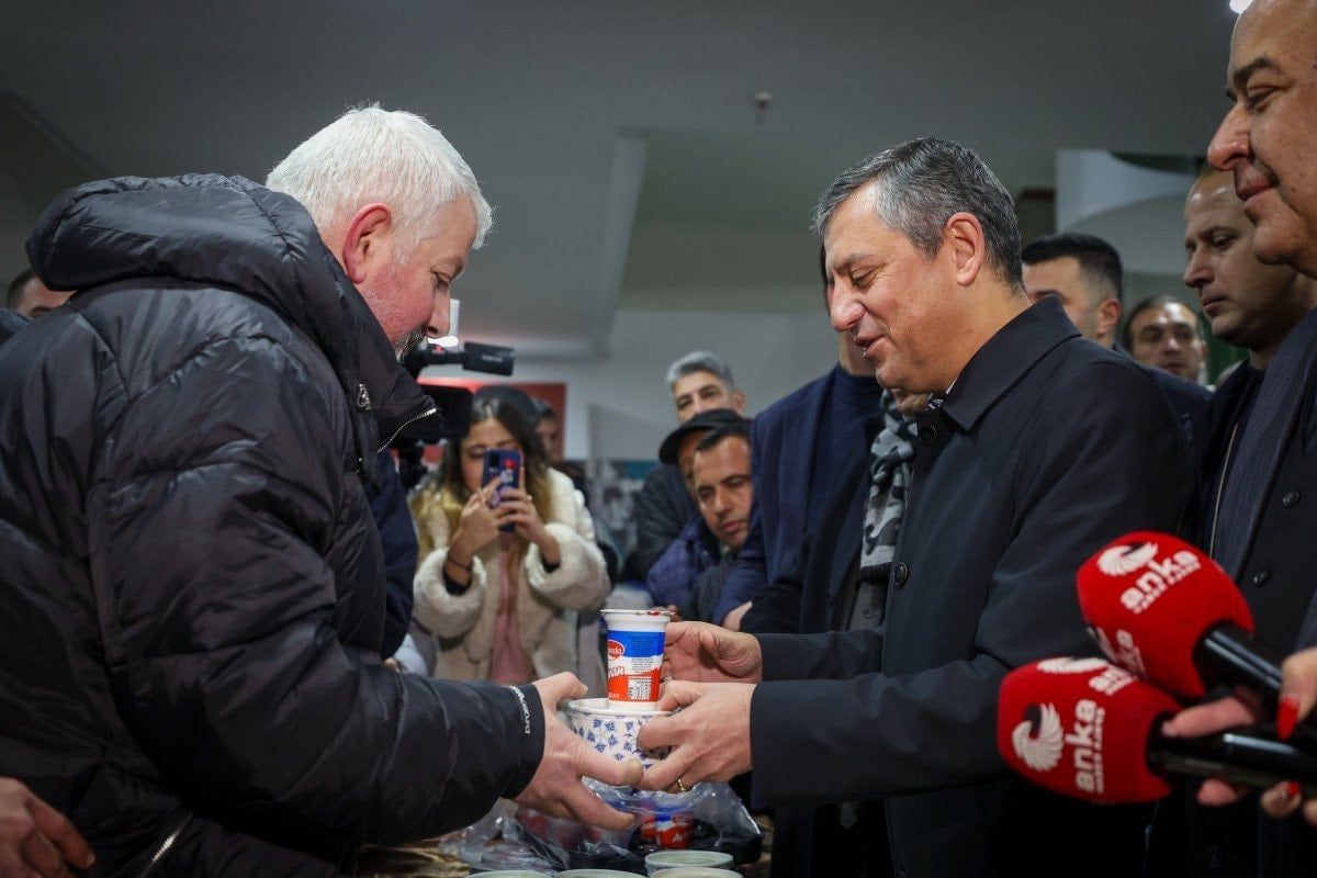 Burada vatandaşlarla sohbet eden Özel, aynı zamanda  vatandaşlara hayır yemeği dağıttı.