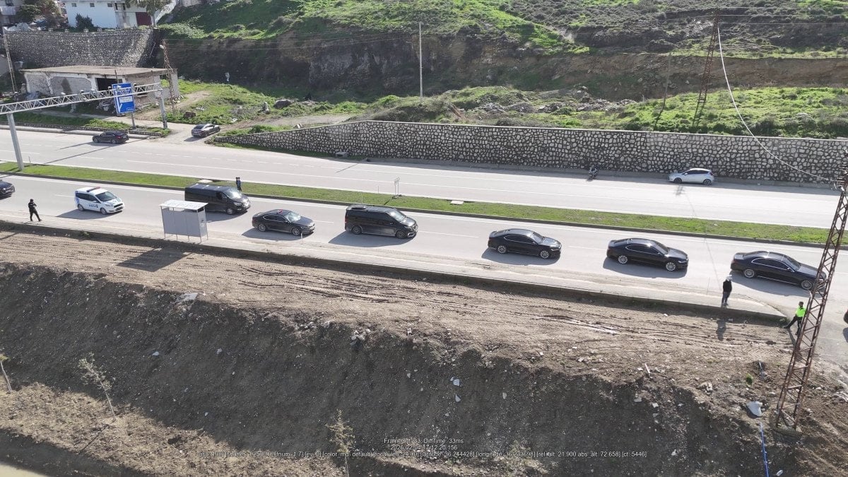 Deprem Şehitliği’ni devasa konvoyla ziyaret eden Özel’in 30 araçlık konvoyu havadan görüntülendi.