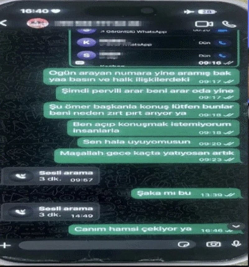 Aslıhan A.’nın “İşe gitmeye gerek var mı?” mesajına karşılık Yalım’ın belediye yönetimiyle görüşme yapması yönünde talimat verdiği tespit edildi.