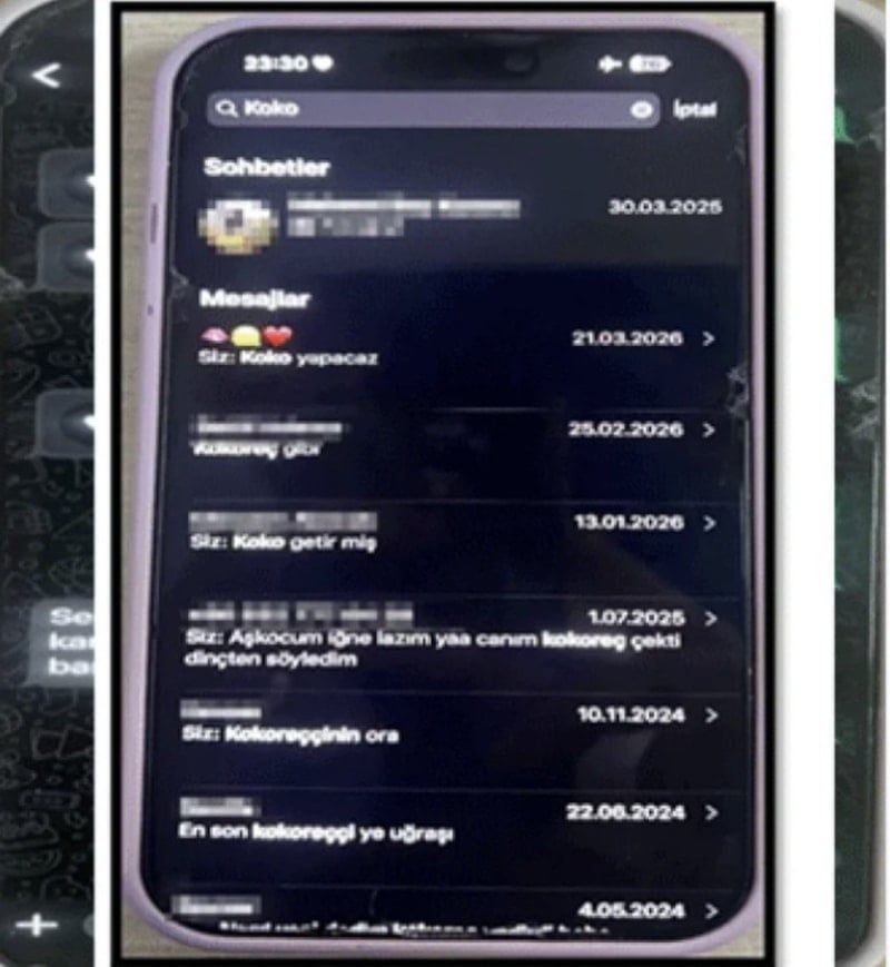Mesajlarda “koko yapacağız” ve “koko getirmiş” gibi ifadeler yer aldığı ortaya çıktı.