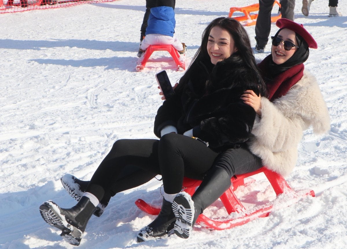 Palandöken’de kayak yapmanın güzel olduğunu belirten Eslim Dere, “Palandöken çok kalabalık ama kızak kaymak çok keyifli.” dedi.