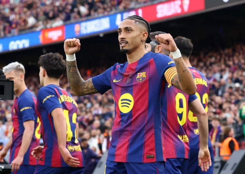 Katalan ekibinin gollerini Raphinha (3), Dani Olmo ve Joao Cancelo attı. Konuk takımın golleri Joaquin ve Djibril Sow’dan geldi.