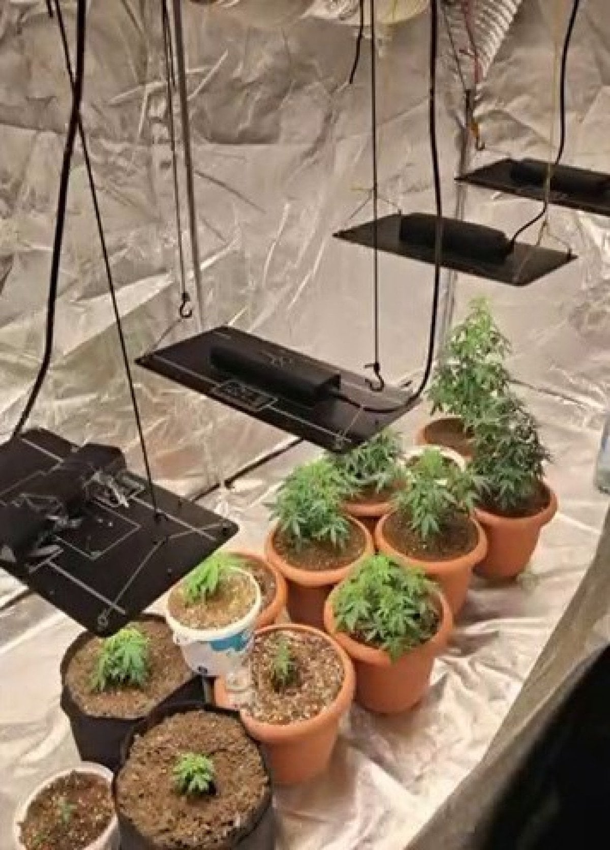 Yapılan aramalarda, 13 adet saksı içerisinde 15 adet (5-30 cm) Hint keneviri, kurtulmaya bırakılmış bir miktar kenevir bitkisi, kenevir yetiştirmede kullanılan 1 adet çadır, muhtelif sıvı ve toz halinde gübreler, 4 adet LED armetür, budama için kullanılan makas, 2 adet havalandırma fanı, 1 adet zamanlayıcı piriz, 1 adet nemlendirme cihazı, 1 adet ilaçlama spreyi ve yetiştirmede kullanılan bitki toprağı ele geçirildi.