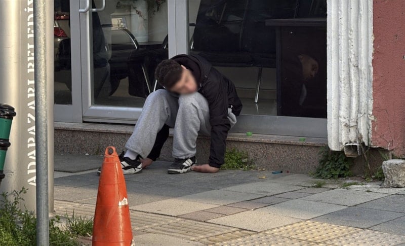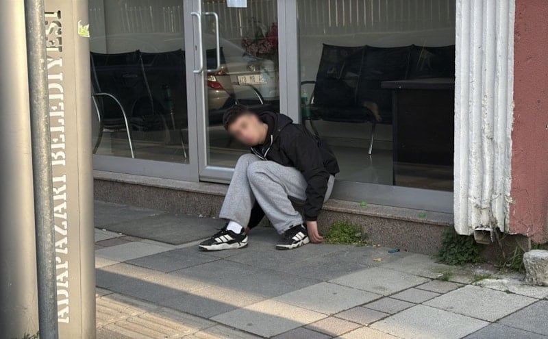 Genç, bir iş yerinin önüne oturdu ve kontrolsüz hareketleri vatandaşların endişelenmesine neden oldu.