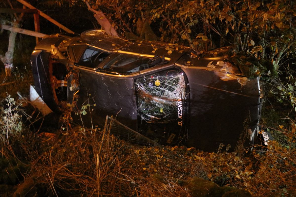 OTOMOBİL ARAZİYE DEVRİLDİ: 5 YARALI