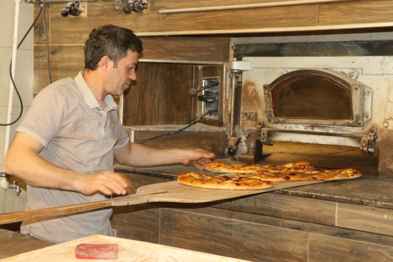 Ramazan ayı gelince insana bir kolaylık geliyor. Sıcağa da alıştığımız için çok zorlanmıyoruz. Çoğu zaman iftar vakti yemeğimizi hemen yiyemiyoruz ama suyumuzu içebiliyoruz. İlk hamuru sabah 09.00’da fırına atıyoruz, iftara kadar pide üretimi devam ediyor.
