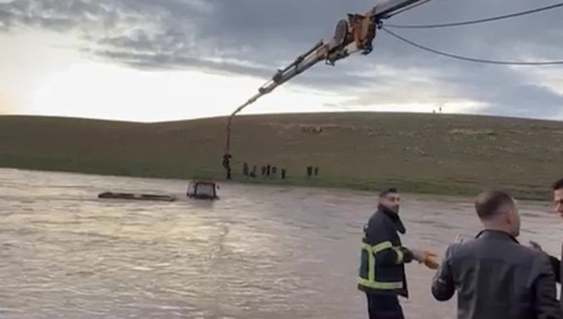 Şanlıurfa’da derede mahsur kalan traktörün sürücüsü vinçle çıkarıldı
