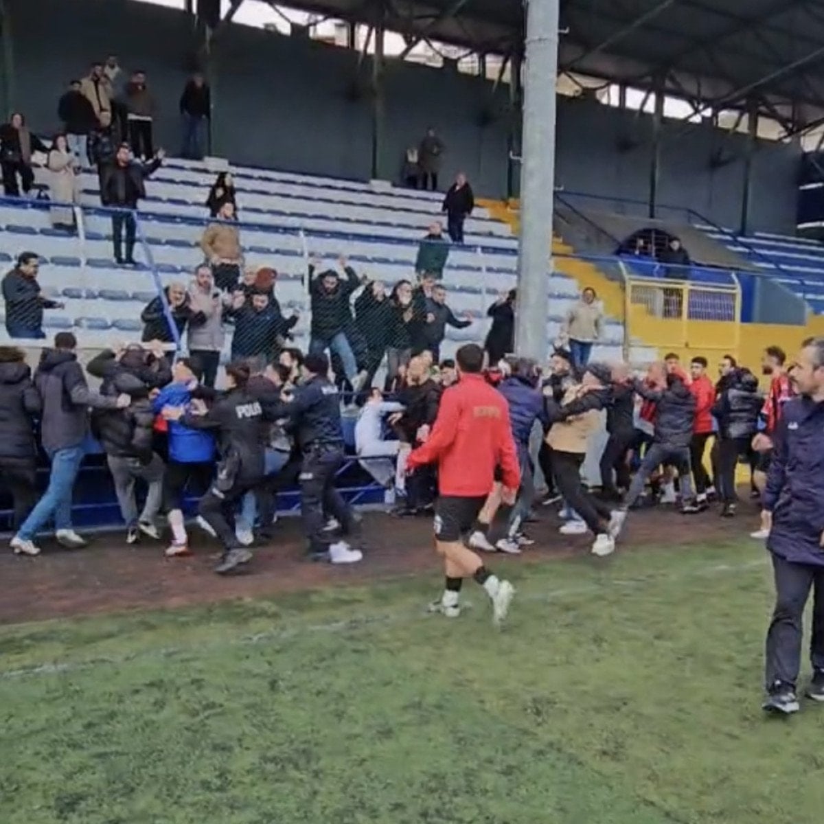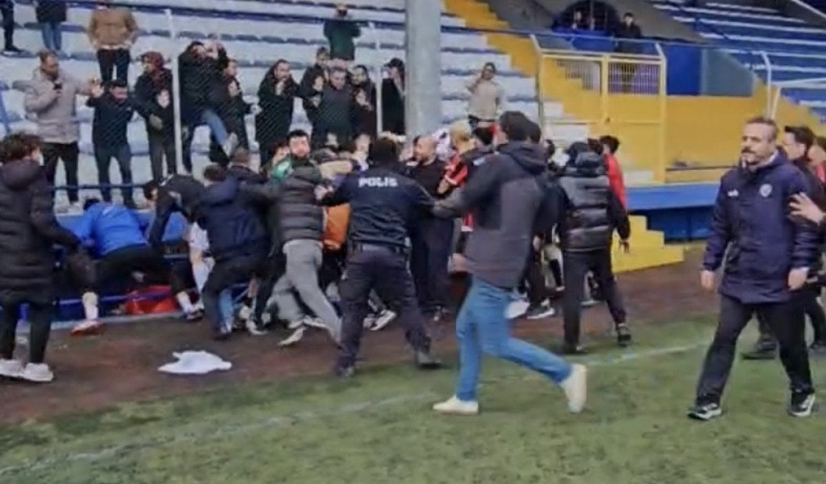 Karşı takımın da karşılık vermesi üzerine stadyum karıştı.