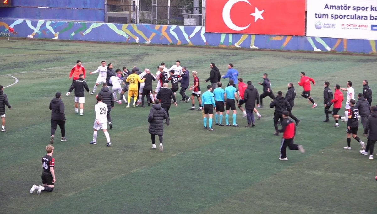 Sarıyer’de amatör maçta stadyum karıştı: Futbolcularla taraftarlar birbirine girdi