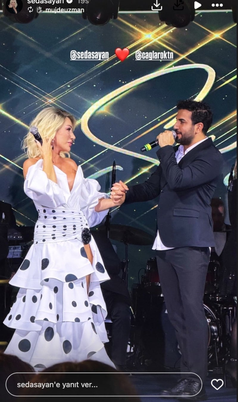 Önceki gün İzmirli hayranlarıyla buluşan Sayan, her sahnesine olduğu gibi bu sahnesine de eşi Çağlar Ökten’i yanında götürdü.