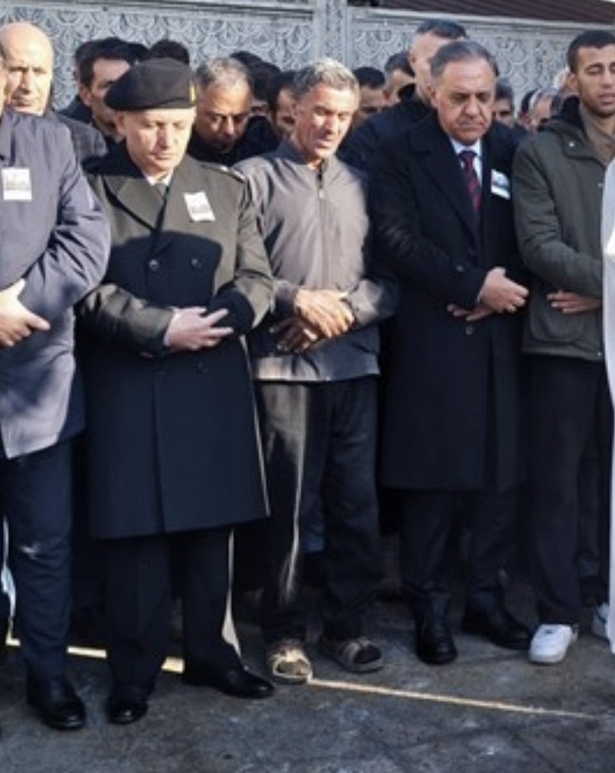 Asaf Arı’nın cenaze namazındaki bitkin halinin yanında kış günü terlik giymesi dikkat çekti.