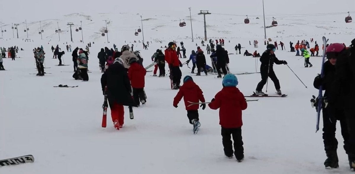 Türkiye’nin önemli kış turizmi merkezlerinden biri Erciyes Kayak Merkezi’nde, okulların ara tatile girmesiyle yoğunluk yaşanıyor.