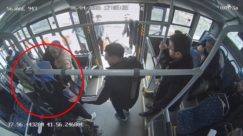 Kadın yolcunun durumunun iyi olduğu belirtildi. Yaşananlar, otobüsün araç içi kamerasına yansıdı.