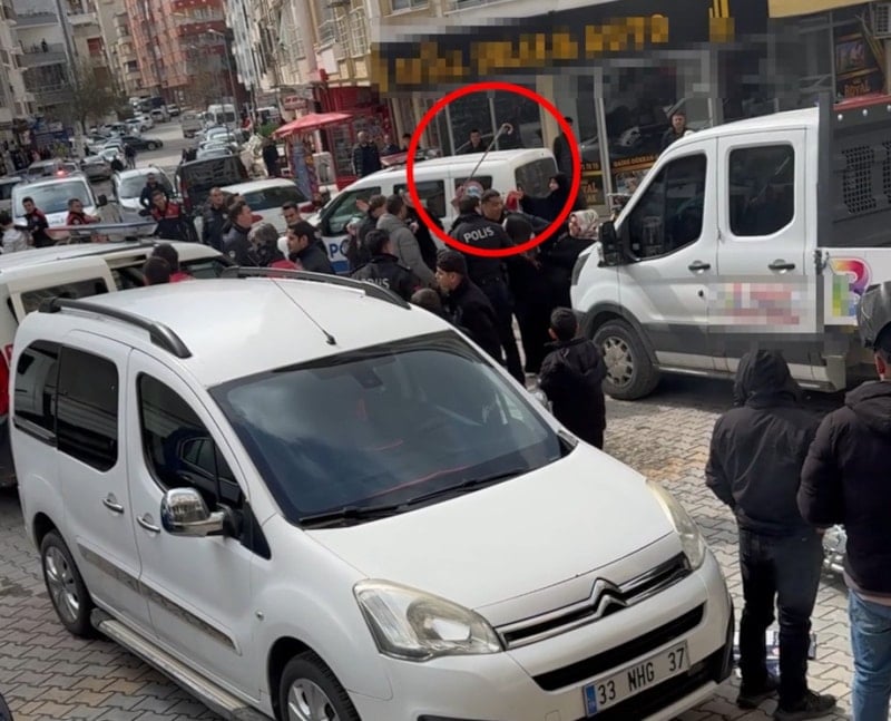 Görüntülerde tarafların birbirine saldırmaya çalıştığı, polis ekiplerinin müdahalesi sırasında bir şüphelinin elindeki ekmek bıçağının alındığı anlar yer aldı.