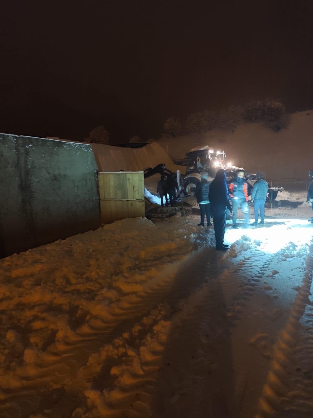 Çökme sırasında ahır içerisinde bulunan 2 traktör ile 1 kamyonet de hasar görerek kullanılamaz hale geldi.