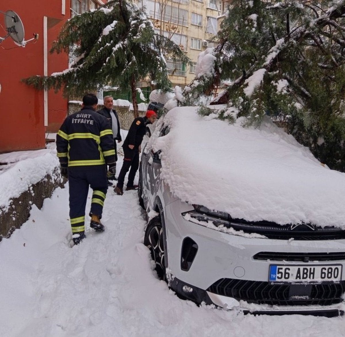 Edinilen bilgilere göre olay, Siirt kent merkezinde meydana geldi. Biriken karın ağırlığıyla kökünden kopan çam ağacı, yol kenarında park halinde bulunan otomobilin üzerine düştü. Çarpmanın etkisiyle araçta ciddi hasar oluştu.
