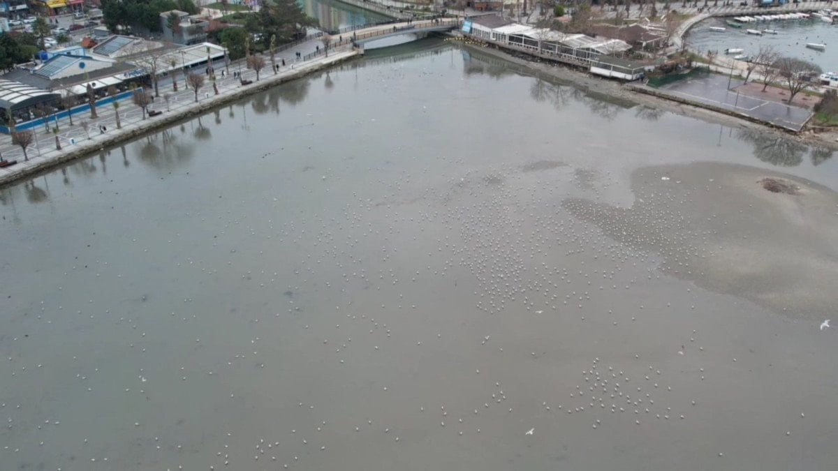 Silivri’de Piri Mehmet Paşa Mahallesi Mustafa Oğuzhan Sokak mevkiinde denizin geri çekilmesiyle birlikte deniz tabanı ortaya çıktı, bazı bölgelerde kum adacıkları oluştu.