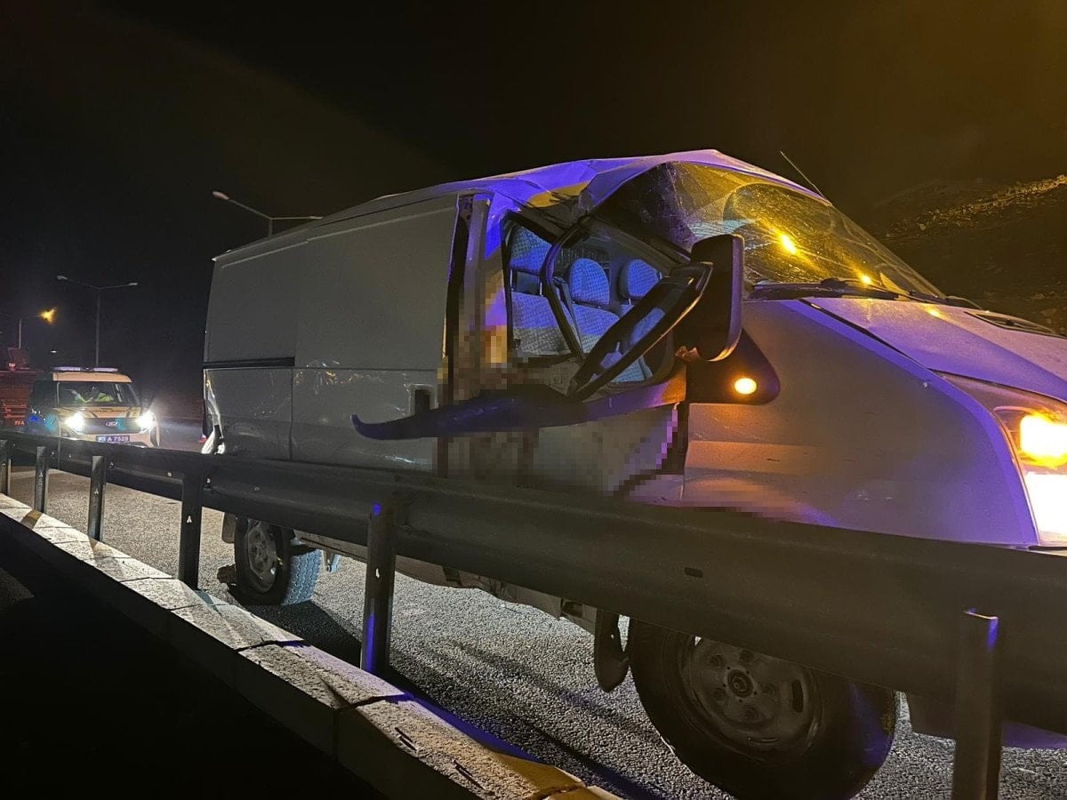 Hızla refüjdeki bordür taşlarına çarpan kamyonet, ardından elektrik direğine vurarak karşı şeride geçti.