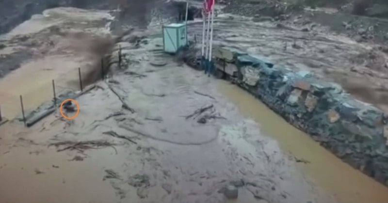 Kamera kayıtlarında dikkat çeken bir diğer detay ise bir köpeğin sel sularına karşı verdiği mücadele oldu. Suyun sürükleyici etkisine rağmen köpek, direnerek kendini güvenli bir alana attı. Sel ve heyelan nedeniyle bazı hayvanlar suya kapılırken, bazı evlerde de toprak kayması sonucu hasar oluştu.