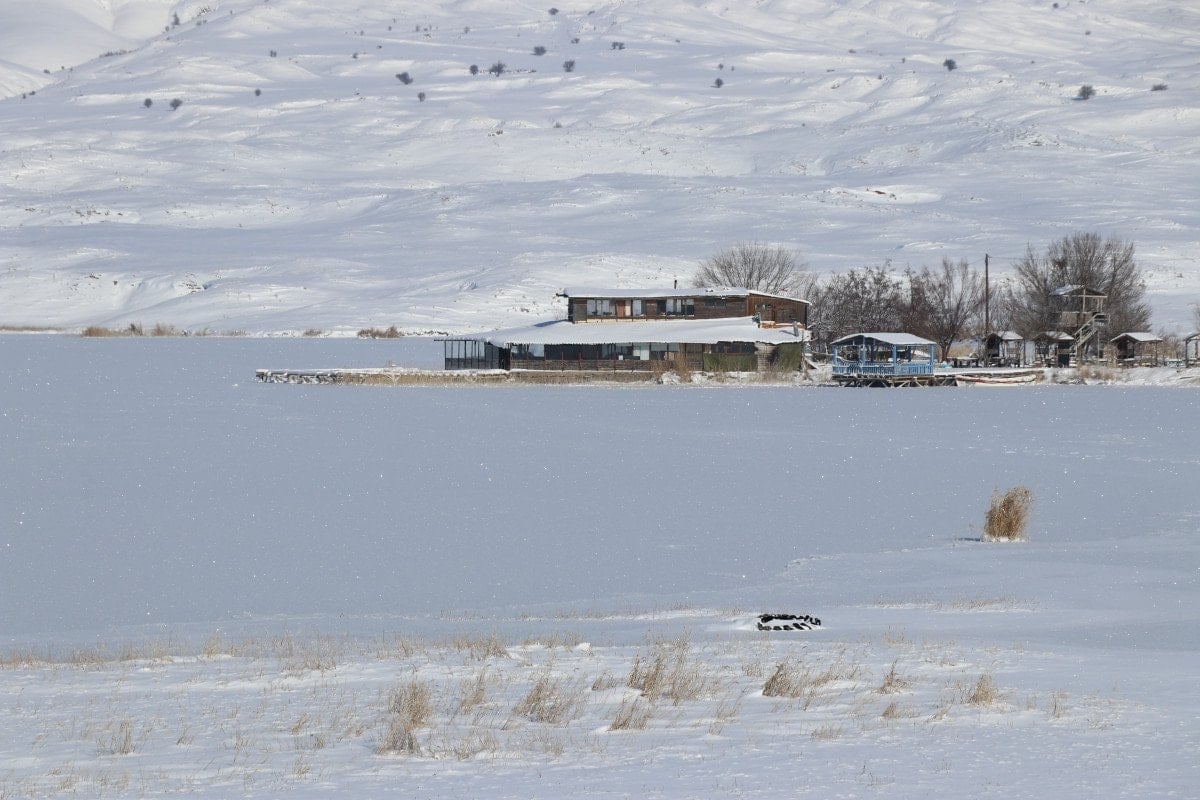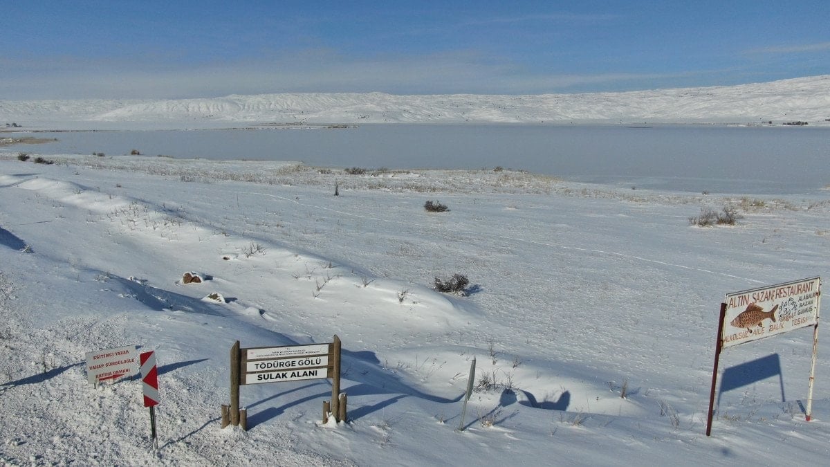 Kent merkezine 55 kilometre uzaklıkta bulunan ve efsanelere konu olan Tödürge Gölü, tamamen buzla kaplandı.