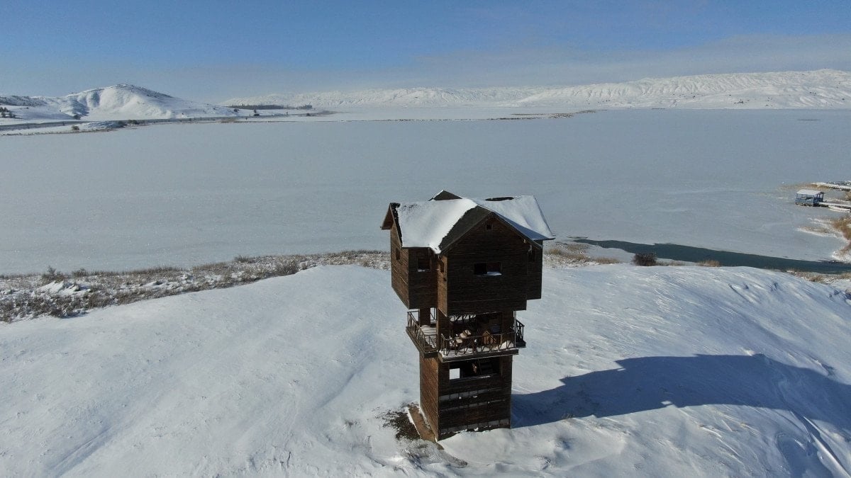 Sivas’ın Zara ilçesinde bulunan yılın 3 mevsiminde binlerce göçmen kuşa ev sahipliği yapan Tödürge Gölü, soğuk havanın etkisiyle dondu.