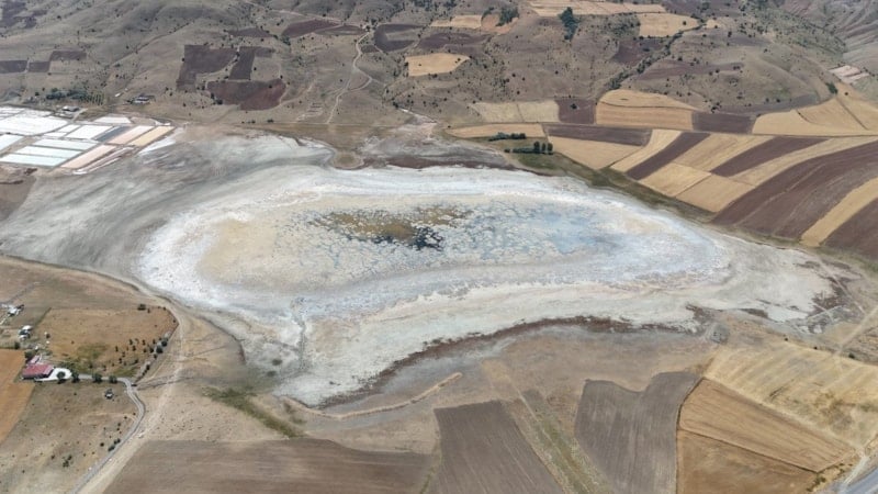 Göçmen kuşların sıklıkla görüldüğü gölden geriye tuz tabakası kalmıştı.