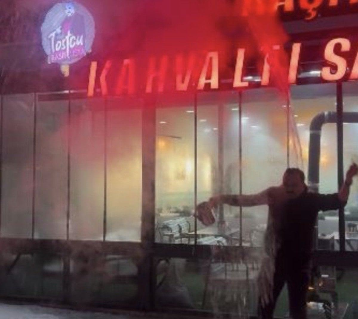 Meşhur tostçu Raşit Yıldırım’ın kendisini yaktığı anlar, saniye saniye cep telefonu kamerasına yansıdı.