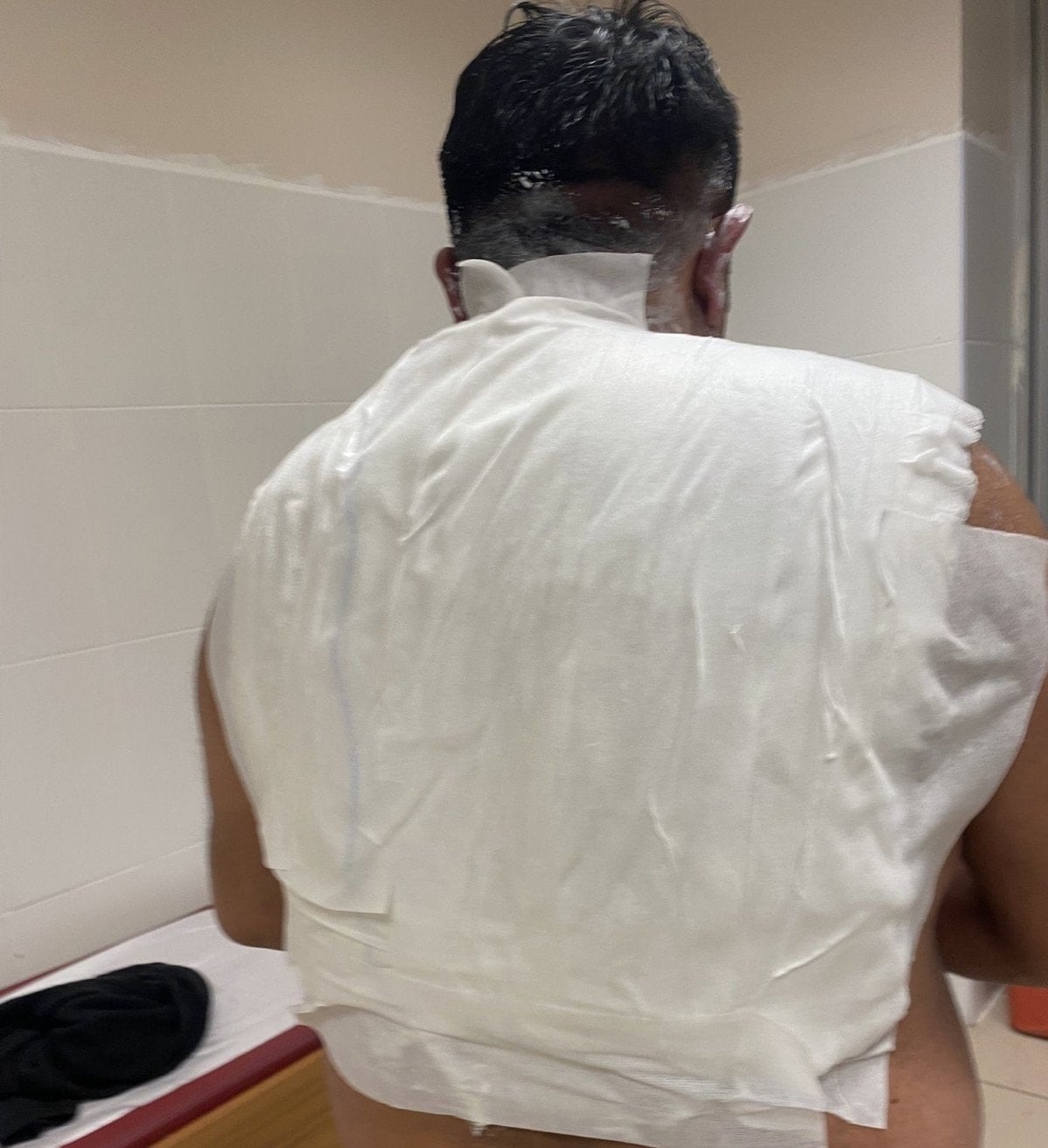 Demlikte çok fazla su olduğu için kaldırır kaldırmaz kafamdan aşağı döküldü. O esnada sırtımda, kafamda, elimde, göğsümde ciddi yanıklar oluştu. Hemen sonrasında hastaneye gittik. Sağ olsun hastanedeki arkadaşlar tedavi altına alarak pansuman yaptılar. Şu an biraz daha iyiyim.