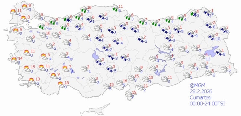 Cumartesi günü soğuk ve kar yağışlı havanın sürmesi bekleniyor.