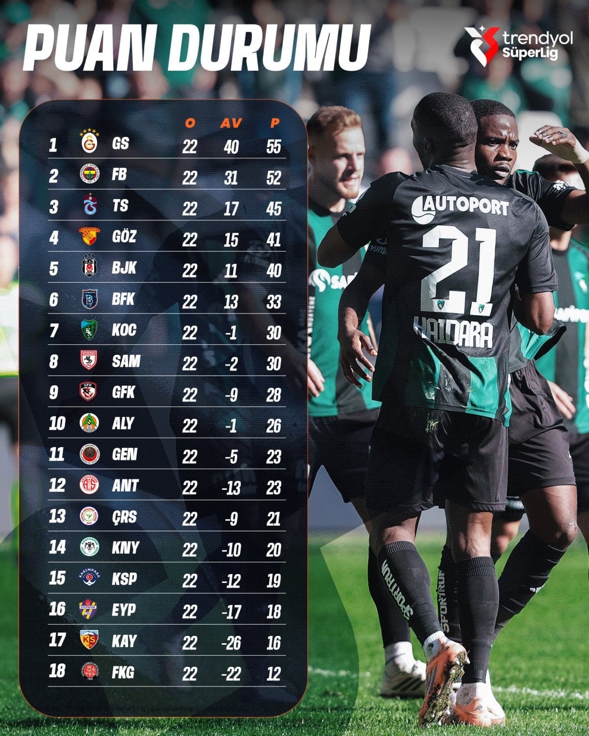 Süper Lig’de 22. haftanın perdesi kapandı.