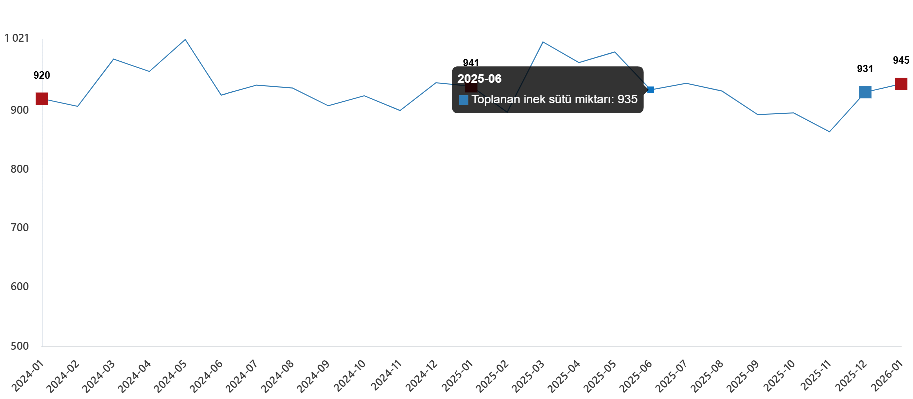 İçme sütü üretim miktarı, Ocak 2026